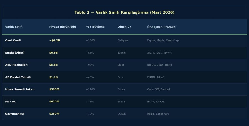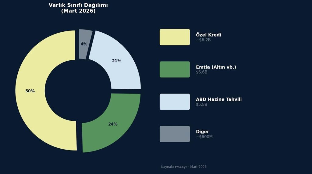 Grafik 2: Varlık Sınıfına Göre Pazar Dağılımı — Mart 2026 | Kaynak: rwa.xyz