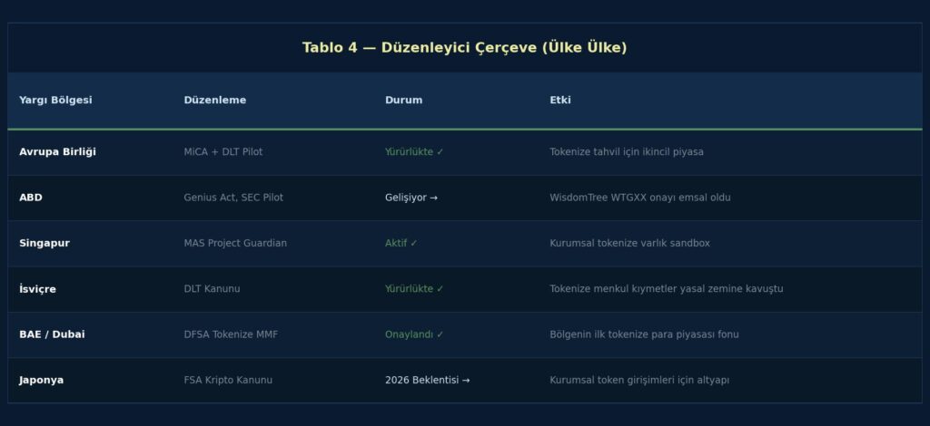 RWA tokenizasyonunun önündeki en büyük engellerden biri düzenleyici belirsizlik ve hızla çözülüyor. 2025-2026 dönemi bu açıdan kritik bir kırılma noktası oldu.